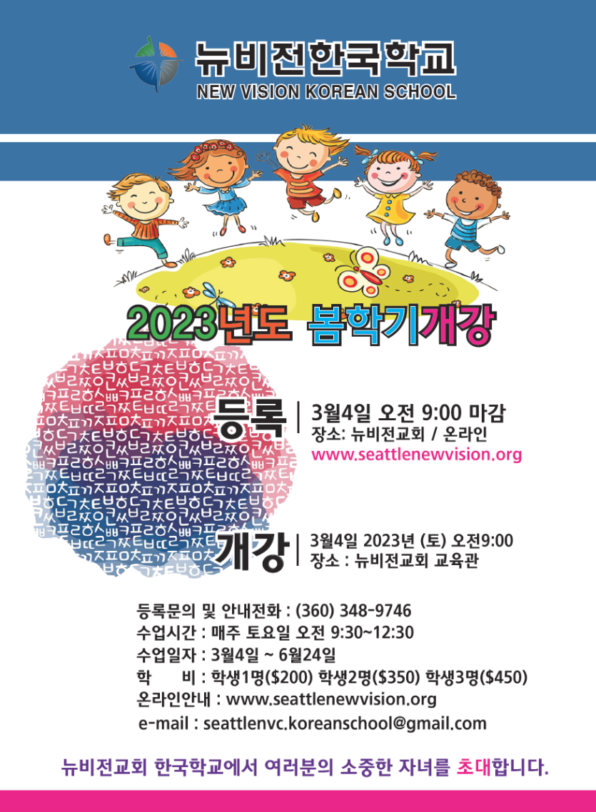 2023년도 봄학기 개강 안내 페이지 정보 작성자 뉴비전교회 조회 3,564회 작성일 23-01-22 14:16 목록 본문 2023년도 봄학기 개강 안내등록하러 가기 클릭 <<-- 다음글휴강 안내 22.11.18 댓글 0 댓글목록 등록된 댓글이 없습니다. 목록